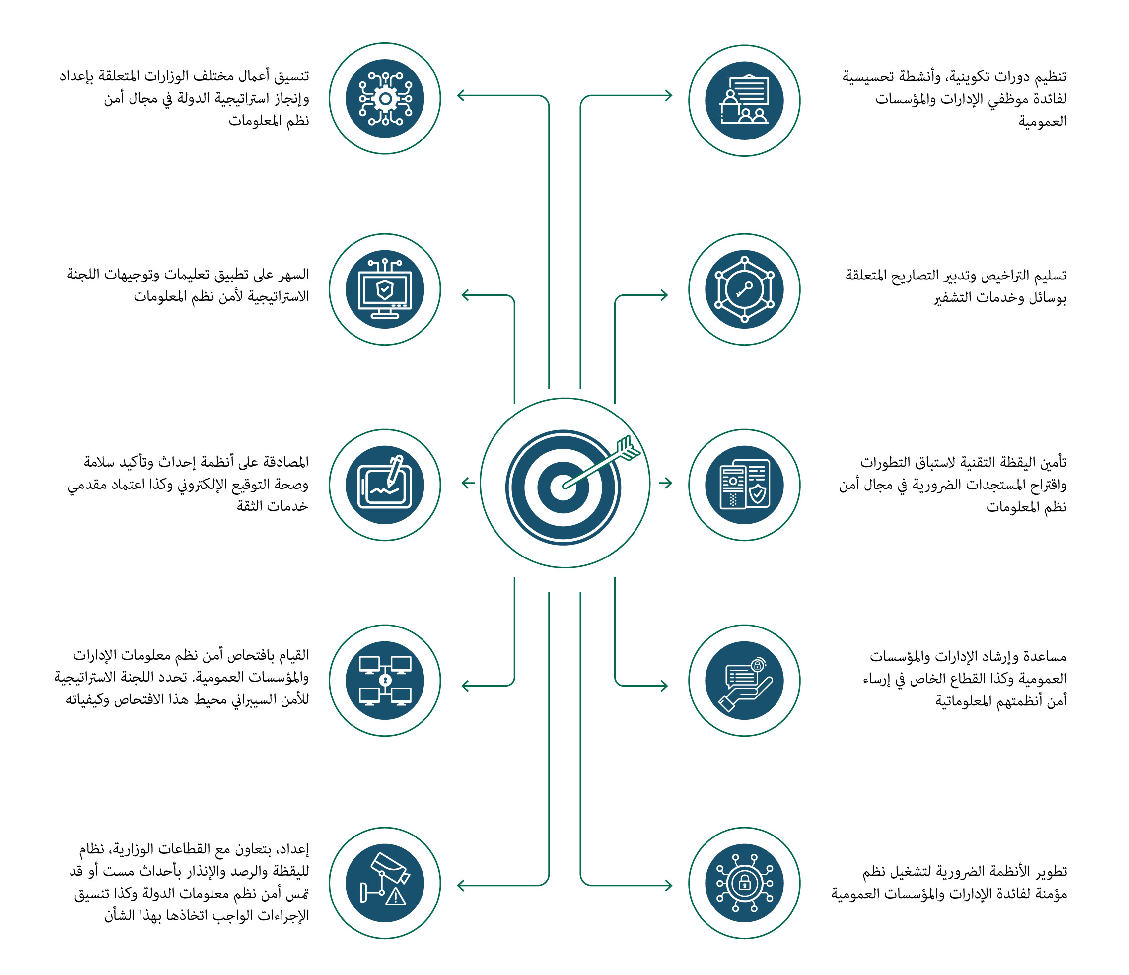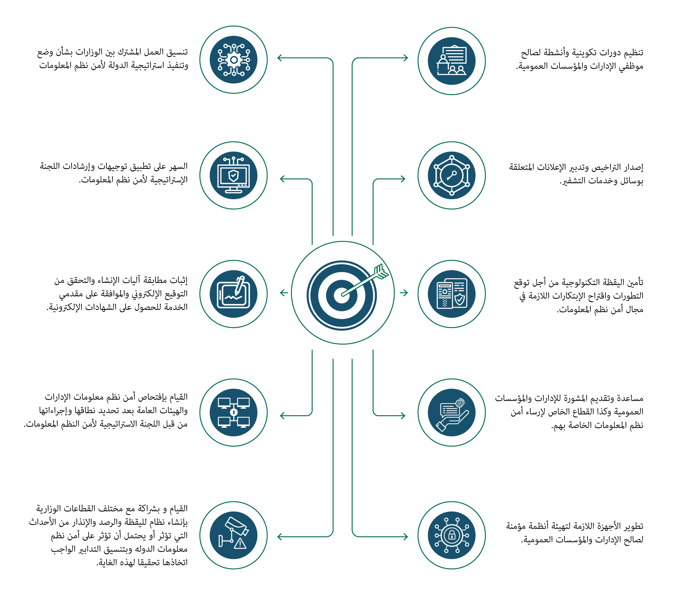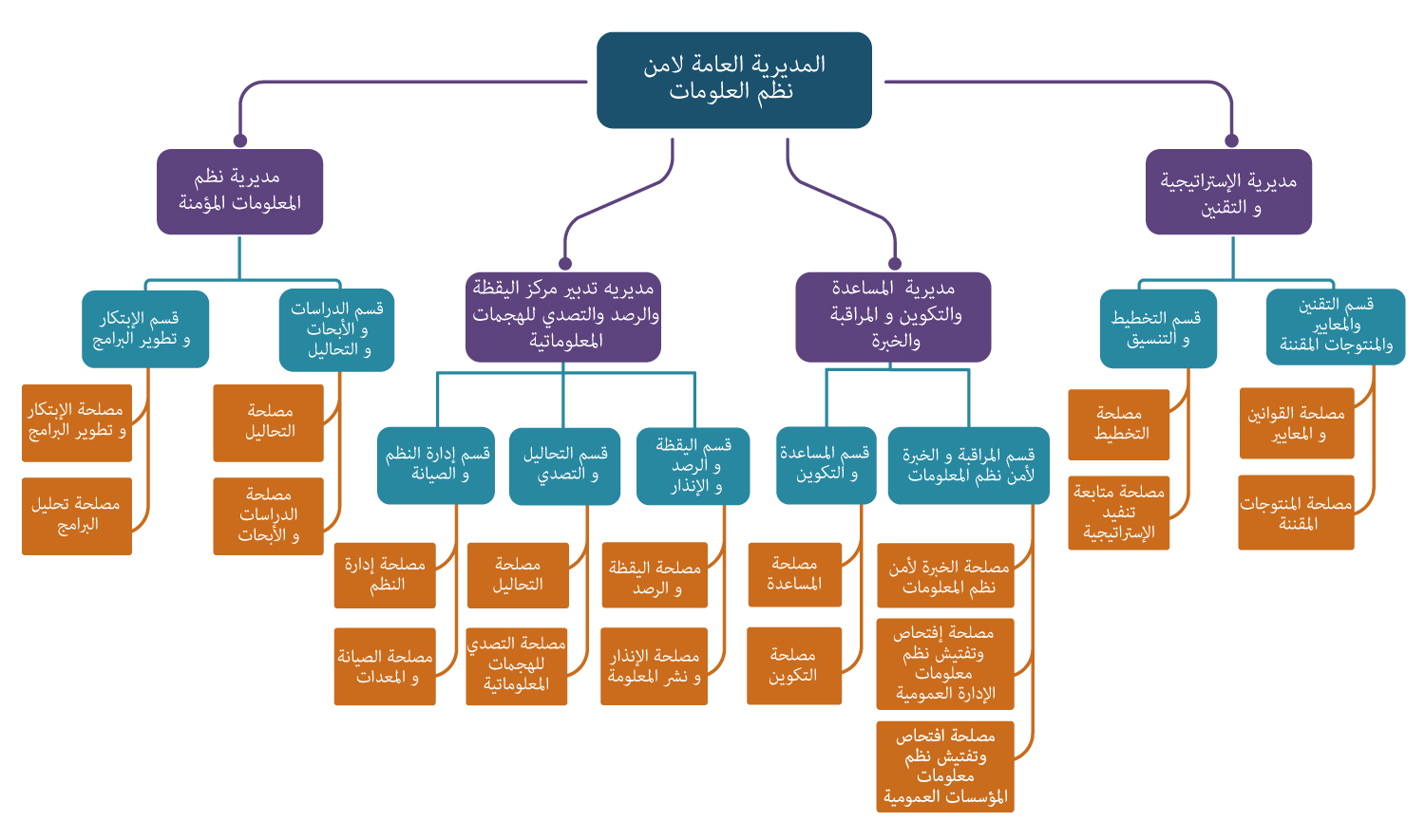 تتكلف هذه المديرية خاصة باقتراح توصيات ومرجعيات تقنية وطرق استعمال لتحسين مستوى أمن نظم المعلومات والقيام بافتحاص أمن نظم المعلومات والإدارات والمؤسسات العمومية.