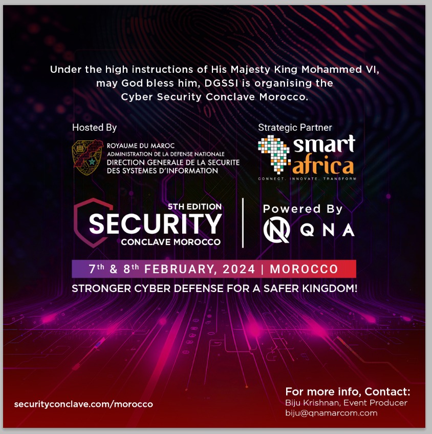 Sur Hautes Instructions de Sa Majesté le Roi Mohammed VI, que Dieu l'assiste, la Direction Générale de la Sécurité des Systèmes d'Information a organisé du 7 au 8 février 2024 un colloque sur la cybersécurité au Maroc. Cette conférence internationale constitue une occasion de rassembler les leaders éminents, les experts et les parties prenantes dans le domaine de la cybersécurité. L'ordre du jour a été soigneusement choisi pour englober un large éventail de défis, d'opportunités et d'initiatives collaboratives en matière de cybersécurité. Il a servi de plateforme cruciale pour favoriser la coopération régionale et internationale, partager des idées et formuler des stratégies en vue de renforcer la résilience dans notre espace numérique de plus en plus interconnecté.